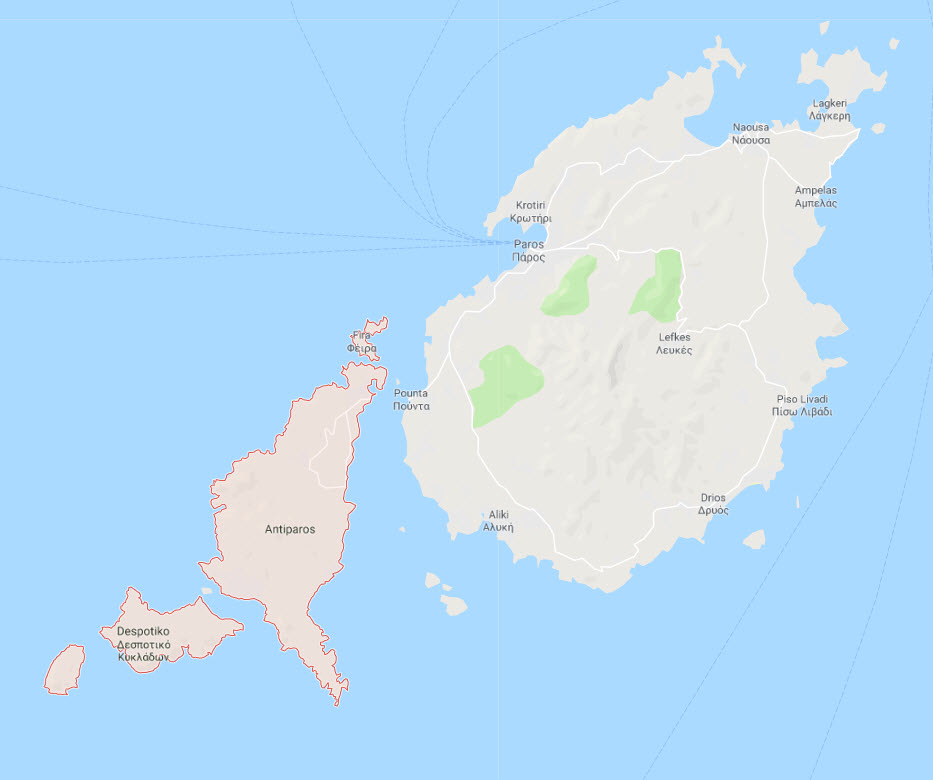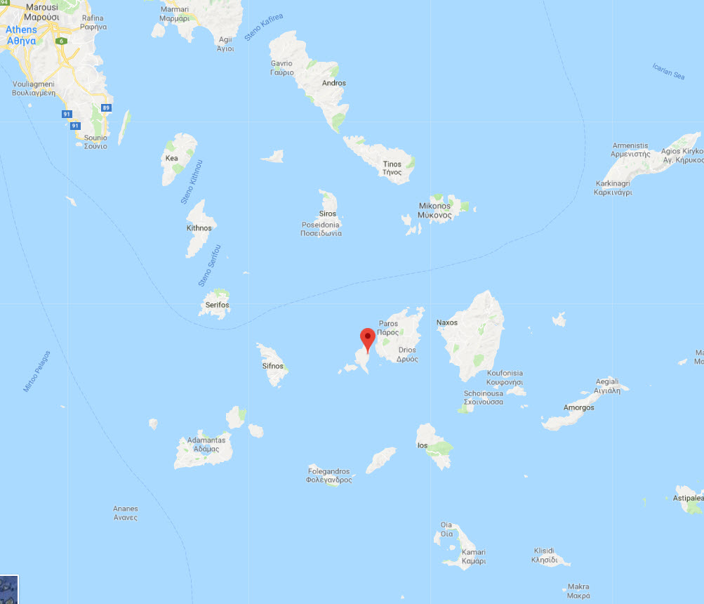 Antiparos is a small island in the southern Aegean, at the heart of the Cyclades, which is less than one nautical mile from Paros, the port to which it is connected with a local ferry.